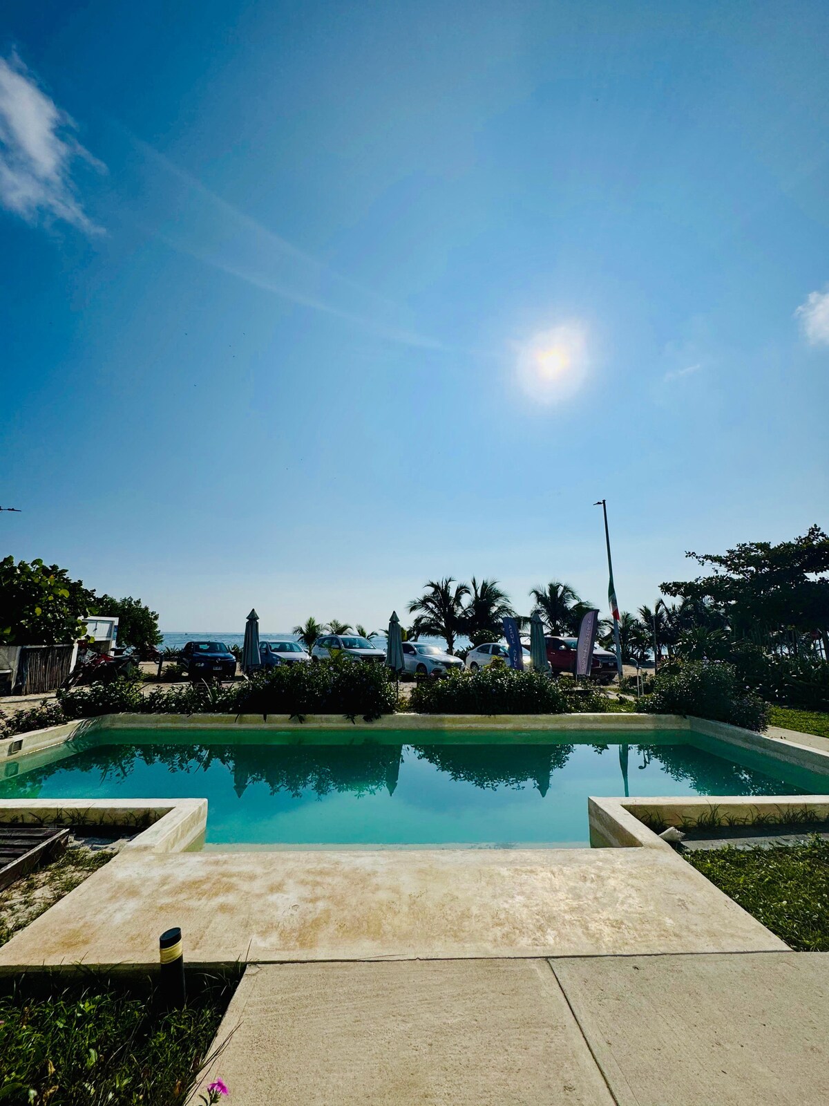 Disfruta de la mejor vista del mar de Mahahual en este increíble RoofTop. Despierta cada mañana con el sonido de las olas y una vista panorámica que se pierde en el horizonte. Disfruta de una experiencia única e inigualable al ver el amanecer desde tu habitación. No dejamos a un lado las comodidades de tu hogar con todo lo necesario para tus días de vacaciones. El mar esta al bajar de tu habitación, así como una hermosa alberca donde podrás refrescarte después de tus actividades en la playa.