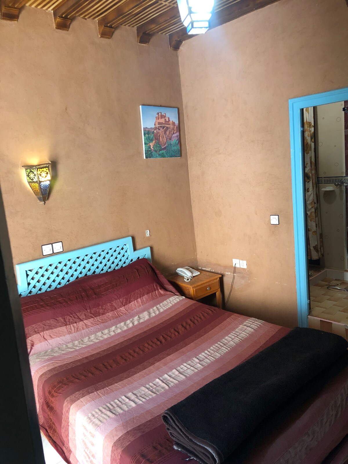 ¡Da la bienvenida a nuestro hotel en Ouarzazate! Estamos muy contentos de tenerte como huésped. Nuestro hotel ofrece un ambiente acogedor y familiar, que se completa con una amplia habitación familiar y baño privado. Si necesitas algo durante tu estadía, nuestro amable personal estará aquí para ayudarte. Gracias por elegirnos y esperamos que pases un rato relajante y agradable con nosotros. ¡Disfruta de tu estadía!