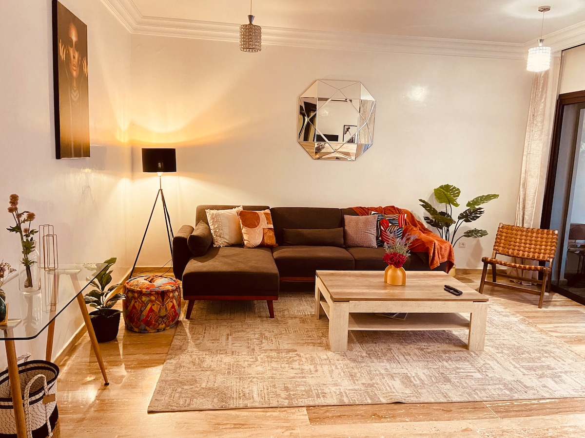 Nuestro apartamento está convenientemente ubicado en el corazón de Marrakech. A poca distancia a pie de la estación de tren, numerosas cafeterías, restaurantes, tiendas de comestibles y supermercados. El aeropuerto está a solo 12 minutos en coche, por lo que es ideal para los viajeros. • La propiedad ofrece wifi de alta velocidad, Netflix e IPTV, aire acondicionado, piscina cubierta, gimnasio, aparcamiento privado y cubierto, y seguridad y vigilancia las 24 horas, los 7 días de la semana.