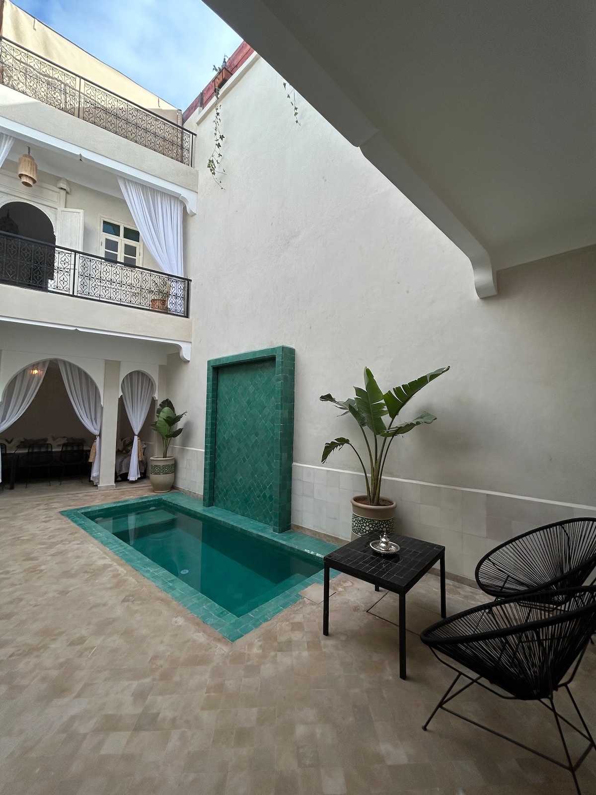 Bienvenido a nuestro tranquilo y bellamente restaurado riad marroquí, situado en el corazón de la antigua medina. Tanto si estás aquí para explorar la cultura, la historia o simplemente para relajarte, nuestro riad ofrece una mezcla única de arquitectura tradicional y cálida hospitalidad. Disfruta del desayuno en el patio o en la terraza de la azotea, donde podrás disfrutar de vistas panorámicas de la medina y escuchar los sonidos de la ciudad despertándose. Por la noche, relájate bajo las estrellas con una taza de té de menta fresca.