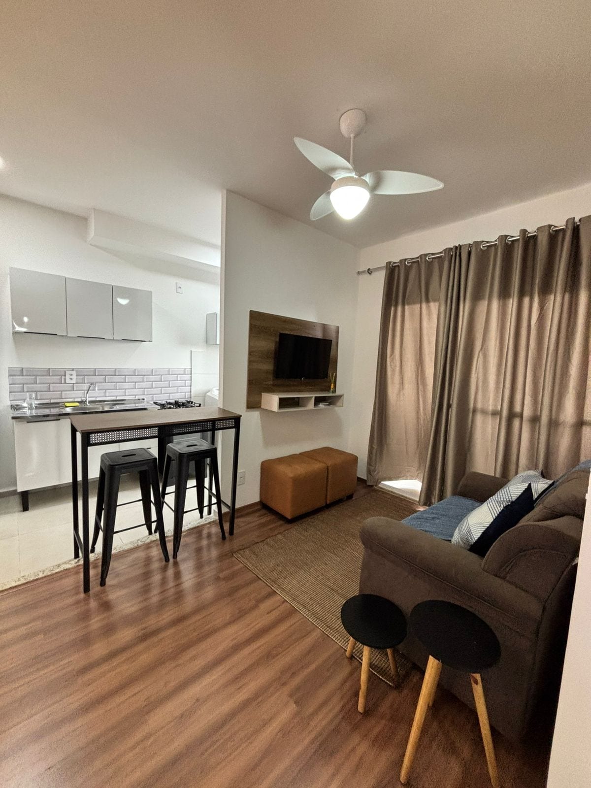Loft amueblado con aire acondicionado 2 camas: 1 colchón doble Probel con muelles ensacados en el altillo + 1 sofá cama individual en el salón Cortinas opacas en todas las ventanas TV inteligente de 43 pulgadas. Nevera 240 L Mesa y sillas Mesas de noche Armario Ropero Cuarto de baño con caja de vidrio Filtro de agua. Wi-Fi • Cafetera Airfryer Licuadora Plancha para la ropa Sanduicheira Utensilios de cocina A 10 min del centro 14 min Unifio 6 min Estácio A 2 minutos de la fábrica de Castor Próx. Dist. Industrial