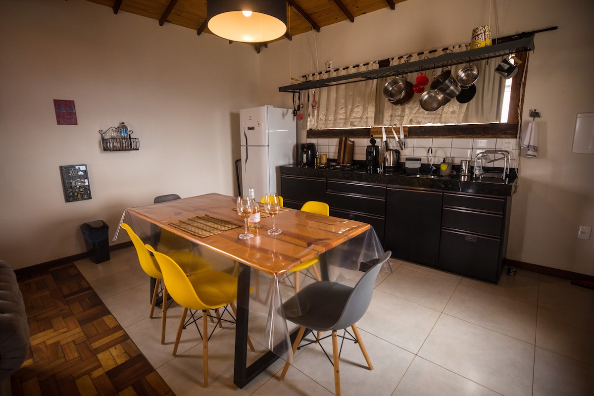 Aquí hay un espacio como una granja, gallinas sueltas en el patio, el perro y la perra, muchos pájaros y bosques por todas partes, al atardecer no olvides cerrar las ventanas. Como hay bosques en algunas épocas del año, hay mosquitos. Recordando que Ouro Preto está rodeada de montañas, lo que hace que la ciudad sea muy húmeda. Hacemos todo lo posible para evitar el moho. Pintura mensual. pero es difícil estar totalmente sin moho.