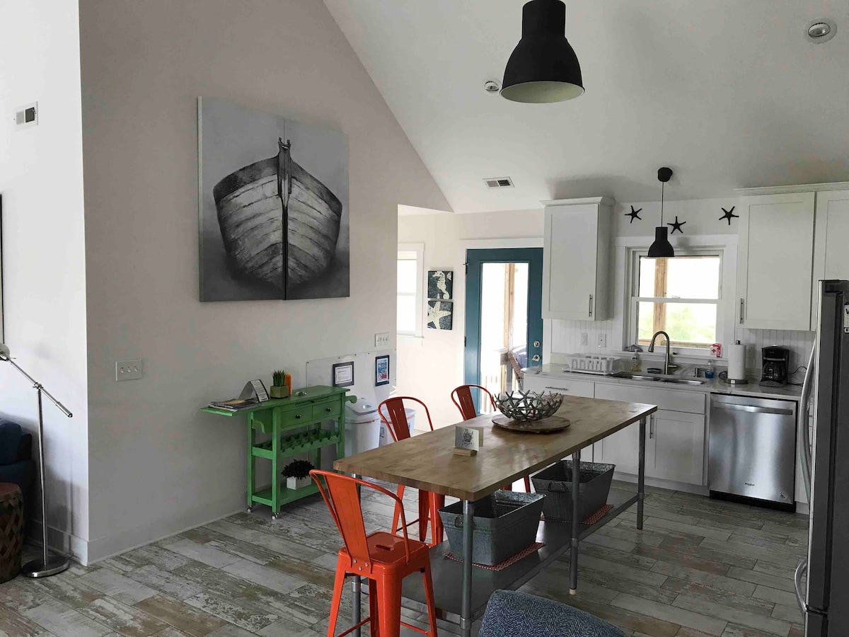 ¡🏝️🌞🐬 Desconecta de la rutina en esta casa de playa única y relajante ubicada en el bosque en el estrecho de Albemarle! ¡Esta joya oculta ofrece una combinación única de escapada rural y playa! La vida silvestre es realmente abundante en esta escapada romántica o vacaciones familiares: ver delfines, nutrias, tortugas, etc. ¡Disfruta de 3 acogedoras habitaciones, un nuevo jacuzzi, muelle privado, kayaks y un balcón personal en cada habitación con vistas increíbles! Convenientemente ubicada entre el centro de la ciudad de Elizabeth y los Bancos Externos. ¡Te esperan relajación y serenidad!🌊🏖️☀️