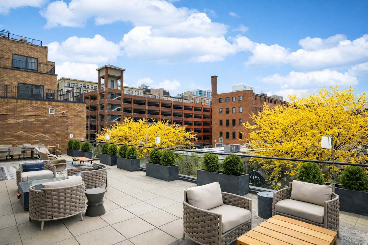 Experimenta Cincinnati alojándote en el lujoso alojamiento de 2 dormitorios y 1,5 dormitorios, situado en el barrio sereno y familiar de Over-The-Rhine. Su ubicación privilegiada ofrece un refugio relajante al tiempo que permite un acceso rápido a los mejores restaurantes, tiendas, parques y atracciones. El diseño elegante y la rica lista de servicios satisfarán todas tus necesidades. ✔ 2 BD cómodos. ✔ 1 cocina totalmente equipada ✔ Open Design Living Azotea ✔ privada ✔ Lavadora y secadora Wifi ✔ de alta velocidad ✔ Televisores inteligentes ✔ Estacionamiento a pocos pasos