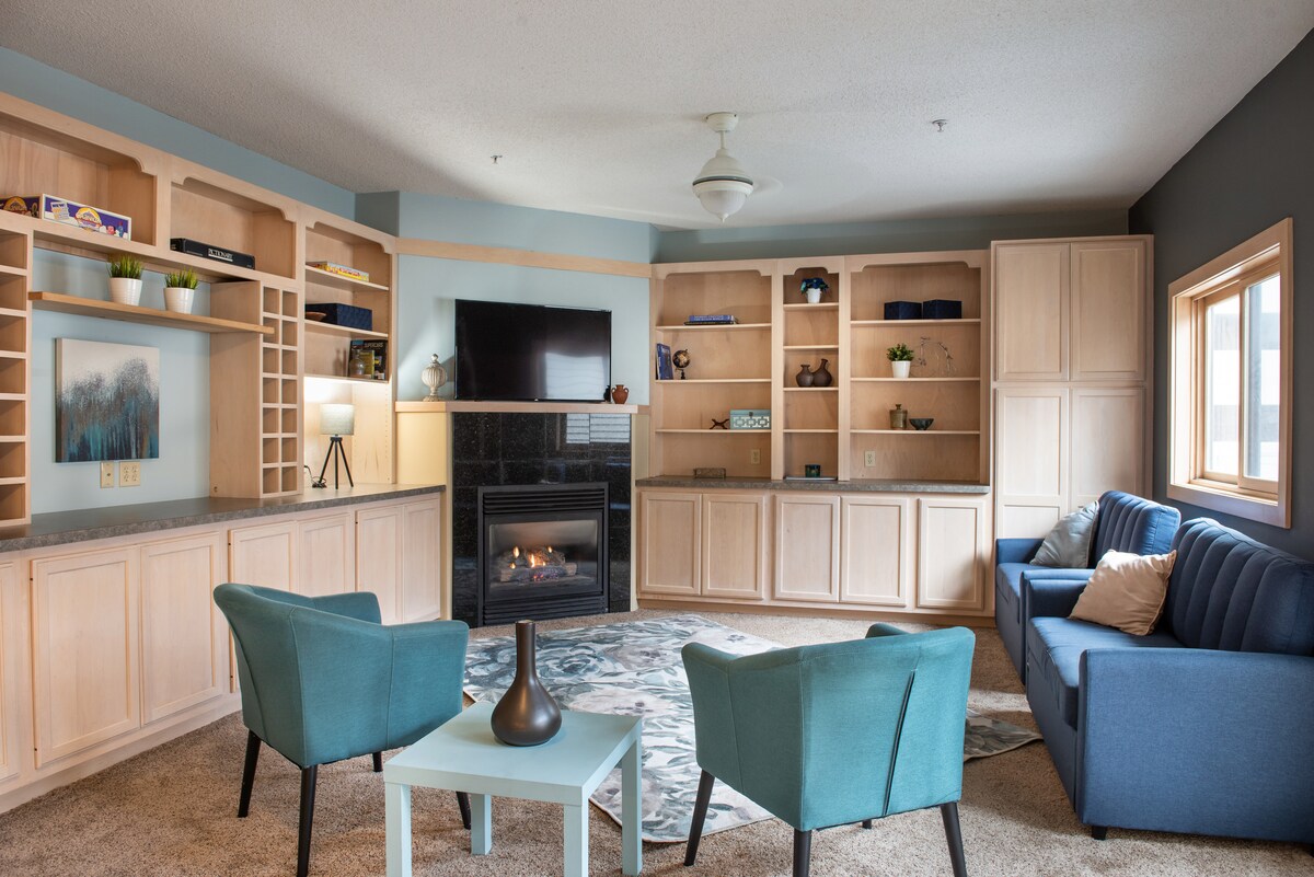 Bienvenido a Phil's Place: el lujo moderno te da la bienvenida desde la red de senderos al aire libre, el parque y los estanques adyacentes y el jacuzzi (¡promoción=GRATIS!) Interior completamente nuevo, baño con calefacción por suelo radiante, sistema de ducha de 3 cabezales con cabezal de lluvia, cocina americana con encimeras de granito, vino y agua de cortesía disponibles a pedido, chimenea de gas, colchones de lujo, TV Sony de 65 pulgadas con aplicaciones cargadas, sofá modular de cuero de grano superior con 3 secciones reclinables que te refrescarán y renovarán para la próxima aventura. Inmaculado, ¡mira las reseñas!