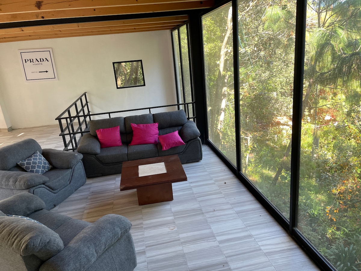 Disfruta de la vista de uno de los lugares mas icónicos del pueblo (el torreón). Y descansa en un lugar cálido y confortable, rodeado por los pinos del cerrito de San Cristóbal pero a la vez a solo 4 cuadras del centro histórico. Mantén en mente que para poder llegar a esta departamento con vista espectacular debes subir 69 escalones.