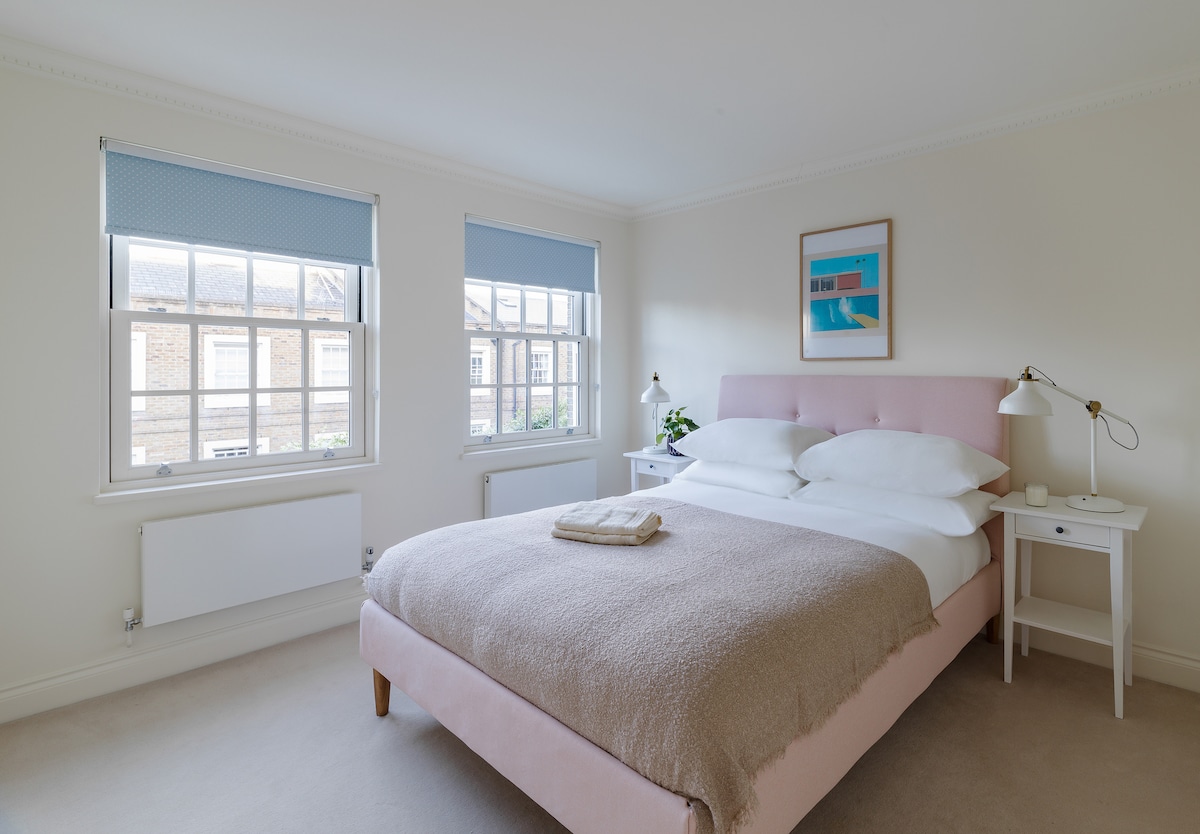 Enjoy central London living when you settle into this sleek spacious fully air conditioned mid-century property. Enjoy your own front door in the heart of the city, less than ten minutes walk to Hyde Park, Notting Hill and Portobello Market Our home is warm and welcoming with two bedrooms and two bathrooms one floor up from the living room, library/dining room and well-stocked kitchen At 100 sqm, it's the perfect size and location for a London stay, compact, comfortable and very well equipped