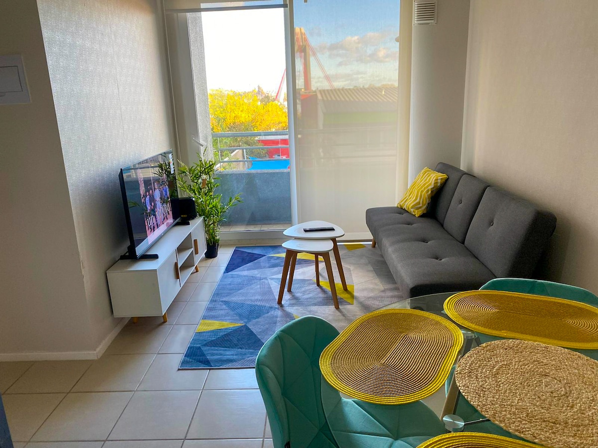 Disfruta tu estadía en un moderno departamento tipo estudio en pleno Temuco. A pasos de Av. Alemania, rodeado de cafés, bares, mall Portal, clínicas, universidades y Casino Dreams. Diseñado exclusivamente para dos personas, cuenta con cocina equipada, WiFi ideal para Home Office, baño privado y balcón. Estacionamiento frente a conserjería, sujeto a disponibilidad. Acceso controlado 24/7, cercanía, confort y estilo. ¡Te esperamos!