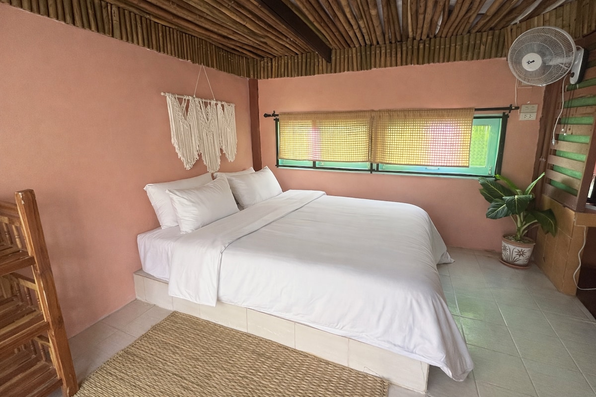 Despierta con vistas panorámicas a las montañas y el canto de los pájaros en esta tranquila casa de campo Pai. Es el lugar perfecto para relajarse, reconectar con la naturaleza y disfrutar de las comodidades modernas. 🌿 El espacio Casa de campo privada independiente con amplia terraza con vistas al valle Cama tamaño queen con sábanas limpias Wifi rápido y escritorio pequeño para nómadas digitales Ventilador refrigerado con ventanales grandes para la brisa natural Baño privado con ducha caliente. Área de cocina sencilla (hervidor de agua, nevera, equipo de cocina básico) A 10 minutos de Pai.