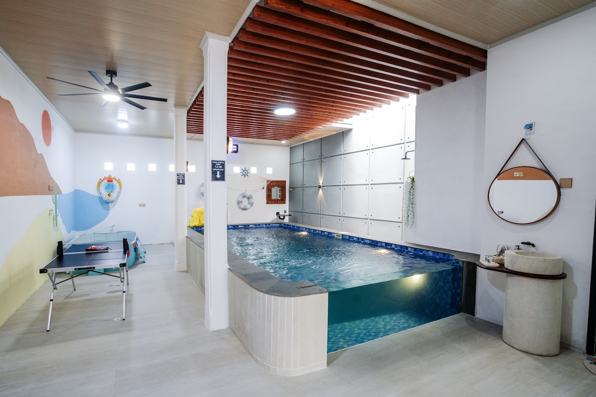 Keluarga Anda akan dekat dengan semua hal saat menginap di tempat yang berlokasi di pusat ini, gratis sarapan, ada private pool indoor, mini tenis meja, Smart TV, dekat dengan minimarket & restoran.