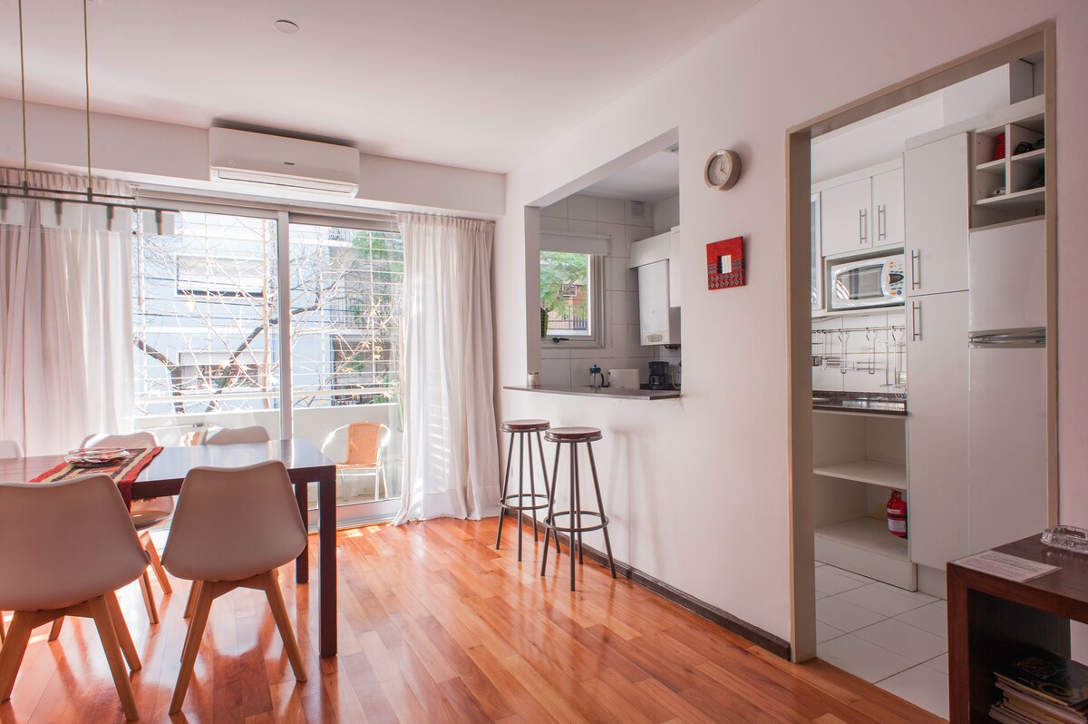 Mantente inspirado durante tu estadía en Buenos Aires, y explora fácilmente la cuidad desde este sensacional departamento urbano, estratégicamente conectado a través del transporte público, Subte y Metrobus. A 50 metros de Avenida Corrientes, en un bario lleno de vida y con acceso inmediato a todo tipo de servicios, con solo salir a la calle. Cerca de Plaza Serrano, con la mejor oferta nocturna de bares y restaurantes de Palermo. El departamento, calidamente decorado y de gran luminosidad natural, cuida cada uno de sus aspectos, para brindarte una estadía inolvidable en Buenos Aires. Departamento completamente reciclado a nuevo y estrenado en Febrero de 2018. Cada uno de los espacios y elementos que conforman el departamento son nuevos y han sido pensados para lograr de este espacio un lugar alegre, confortable y armónico, sin perder de vista todo aquello que uno necesita para sentirse como en casa. Pisos de madera, ventanales con excelente iluminacion natural, equipados con cortinas roller Screen y Black Out. Baño completo con ducha, Barra desayunadora, SMART TV 32" con Netflix y Television Digital Abierta, Internet WiFi de alta velocidad, Parlante para reproducir mùsica desde dispositivos bluetooth, Heladera con Freezer, Aire Acondicionado, Microondas, delicada ambientacion de luminaria artificial, Somier de 2 plazas y media, Sofa Futon de 1 y 1/2 plaza, Ropa de cama y toallas, Plancha, Secador de Pelo, Cafetera, Tostadora, Juego de utensillos de cocina, ollas y todo lo necesario para cocinar, y mas! como en casa!!!! La tarifa incluye todos los servicios e impuestos (luz, gas, internet, TV Cable, expensas e impuestos). Siempre que podemos recibimos a nuestros huéspedes personalmente. El horario de check in puede ser flexible siempre que no haya otros huéspedes entrando o saliendo en el mismo día, caso en el cual el horario de entrada seria a las 13 hs y el de salida a las 10 hs. Siempre buscamos la comodidad y conveniencia de nuestros huéspedes en la medida de nuestras posibilidades! Villa Crespo es un barrio en pleno crecimiento en los últimos años, poblándose de cafés, cervecerias artesanales, restaurantes y tiendas de ropa. Está situado en el pulmón de la ciudad con todos los medios de trasporte disponibles (Buses, Subte y Tren) y muchas avenidas importantes que lo rodean. La moda llegó al barrio, convirtiéndose en el epicentro de los locales de diseño e indumentaria, donde vas a encontrar ofertas y las mejores marcas de ropa de Argentina. Al mismo tiempo encontrara en las inmediaciones del departamento todo tipo de locales comerciales utiles. Solo por nombrar algunos: Kiosco, panaderia, mercado, supermercado, lavanderia, farmacia, verduleria, todo tipo de casas de comida. El departamento está ubicado a 400 metros de la linea "B" de Subterráneo (Estación Malabia), y 100 metros del "Metrobus" que conecta mas de 30 lineas de colectivos entre ellas. Desde aquí podrás llegar a cualquier punto de la ciudad.