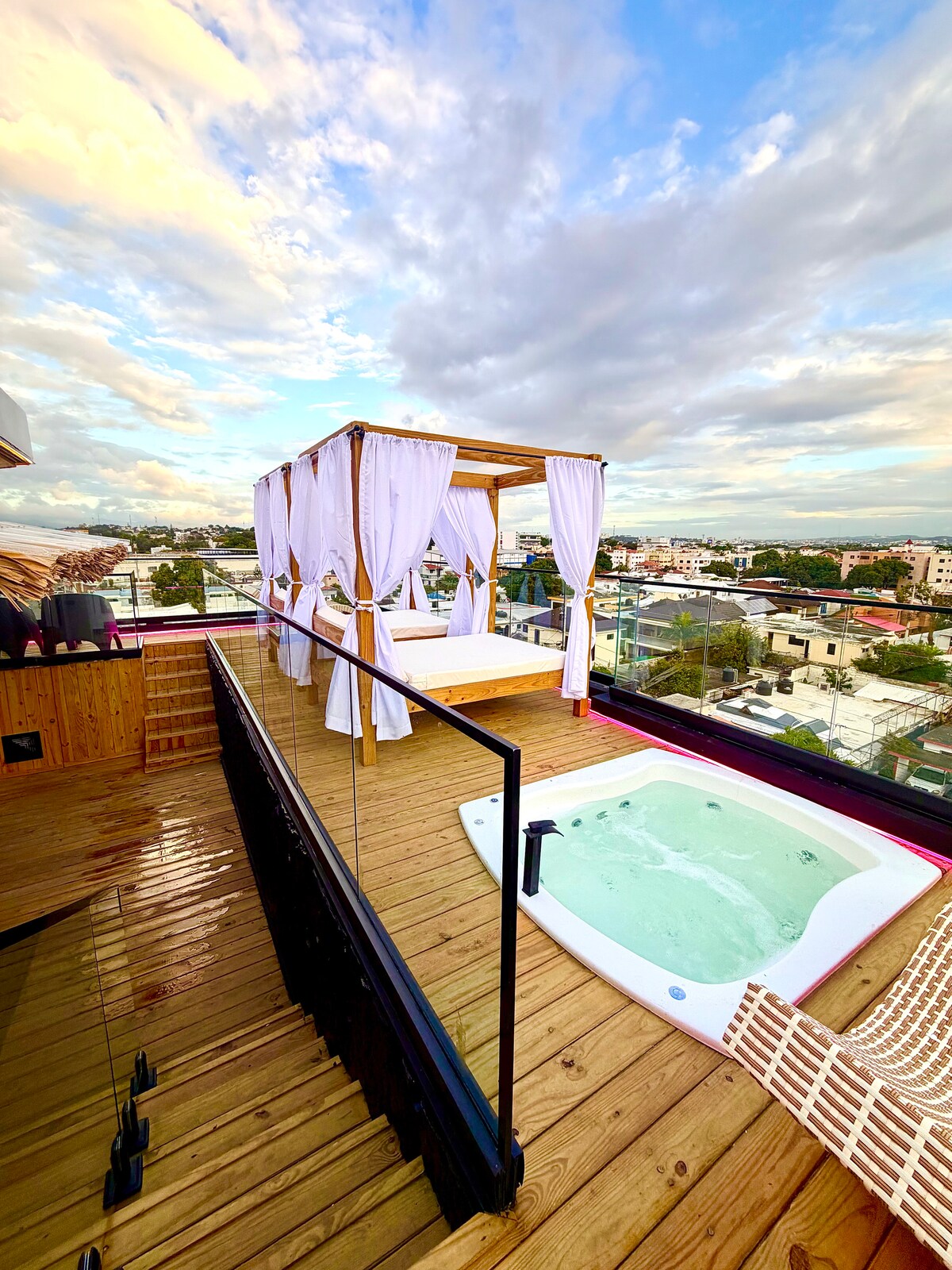¡Bienvenido al apartamento más moderno de Santiago! Lujo, privacidad y excelente ubicación. Lo que te encantará: • Jacuzzi Privado: Grande y exclusivo. • Outdoor: Terraza con muebles de ratán, BBQ y área verde. • Interior: Smart TV 75", AC y diseño de revista. • Cocina y Bar: Espacio elegante y equipado. • Baño Premium: Estilo ultra-moderno y texturizado. Ideal para parejas en escapada romántica o viajeros que buscan la máxima calidad. ¡Reserva tu experiencia!