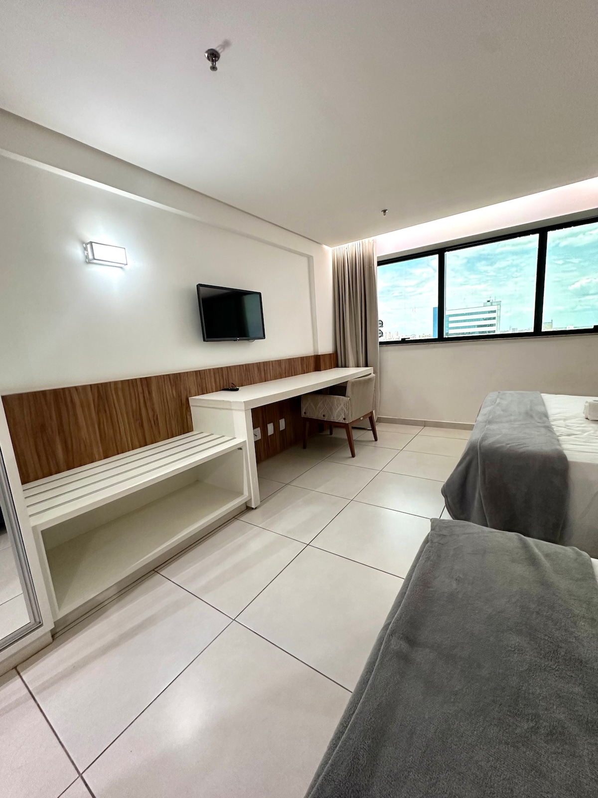 Hospede-se em um flat exclusivo dentro de um dos melhores hotéis de Palmas e viva a cidade com todo o conforto que você merece. Localizado no centro, o apartamento oferece suíte completa, varanda panorâmica com vista incrível para cidade e Lago de Palmas e ainda cozinha equipada e sala aconchegante. No condomínio, você terá acesso à piscina e à academia moderna. Seja a trabalho ou lazer, este flat une praticidade, sofisticação na capital do Tocantins.