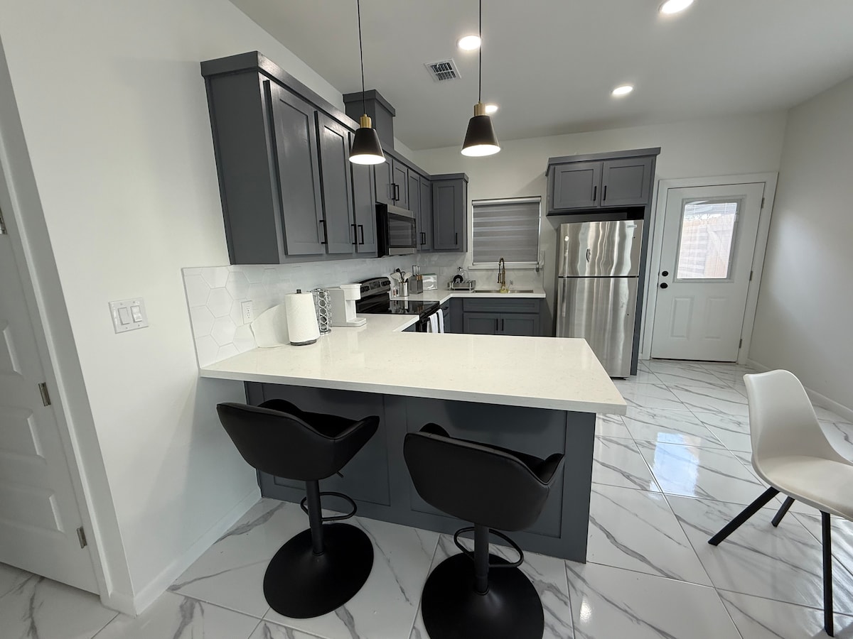 Feel at home in this clean and luxurious property with high-quality furniture, sheets, pillows, and mattresses. The kitchen comes fully loaded with cookware, dining ware, utensils, and anything else you may need to cook except the ingredients! You can also enjoy the state-of-the-art whole-house water filtration system. You will instantly notice the difference the second you step in the shower. The property is about 10 minutes away from the main shopping centers and the airport. Enjoy your stay!