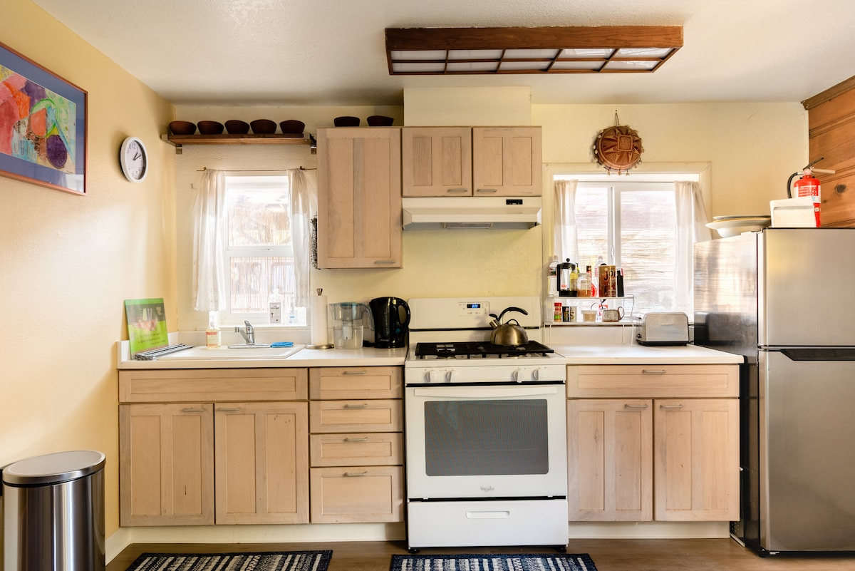 Amplia casa de diseño perfectamente ubicada en el corazón de Palo Alto. Estamos a 2-5 cuadras de los principales inversores, Stanford, Cal Train, Whole Foods, restaurantes y el centro de University Ave. ¡Disfruta del espacio para relajarte/comer/trabajar dentro y al aire libre en nuestro jardín! ¡Descansa bien en una cama de tamaño completo con baño privado! Ten en cuenta que el patio trasero se comparte con otros huéspedes de Airbnb que se alojan en la casa principal.
