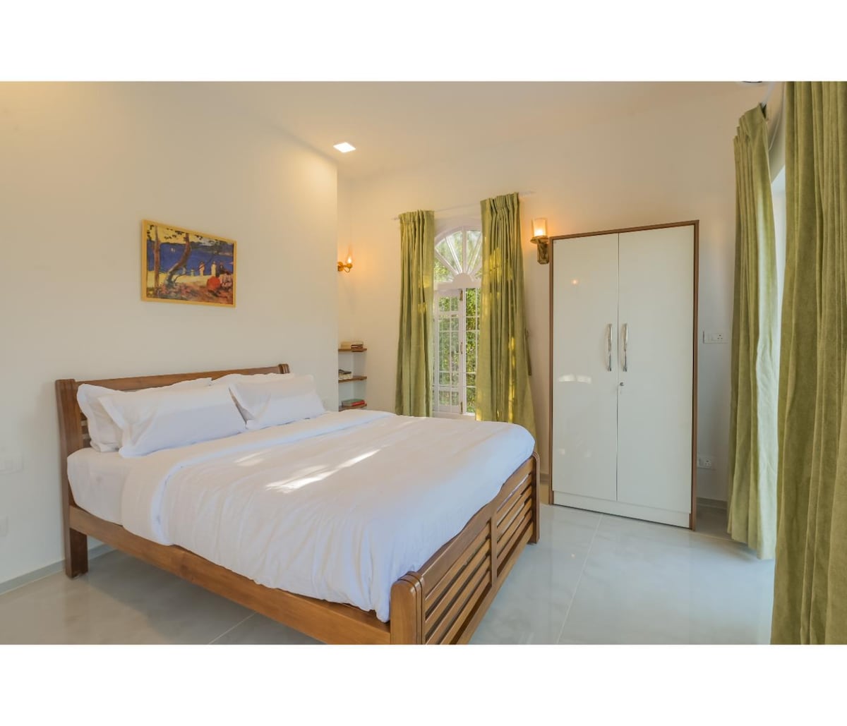 Brand-new Premium AC villa, elevated with a panoramic view of Patnem Beach Perched above the beach, our new Hillside Sea View Rooms offer a little extra comfort and style while staying close to nature. 60 sqm of bright, airy and private space designed for 2–3 guests, including a spacious bedroom with 180° windows (complete with blackout curtains) that bring the ocean and treetops right to your bedside.