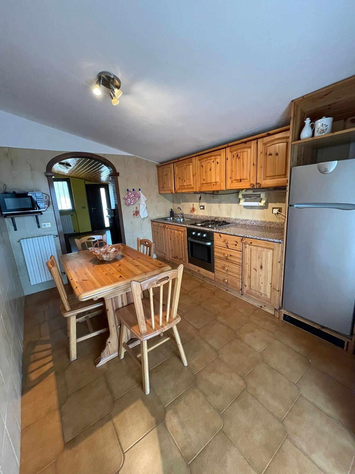 Inmersa en el corazón de las montañas de los Abruzos, Casa Saotta, un espacioso y luminoso apartamento recientemente renovado, es perfecto para los amantes de la naturaleza. La propiedad ofrece dos dormitorios dobles, dos baños, una sala de estar con sofá cama y chimenea, y una cocina totalmente equipada. Las estaciones de esquí de Campo Felice son fácilmente accesibles, lo que te permite disfrutar de las pistas en invierno, mientras que la ciudad de L'Aquila, con su historia y cultura, está a solo 15 minutos en coche.