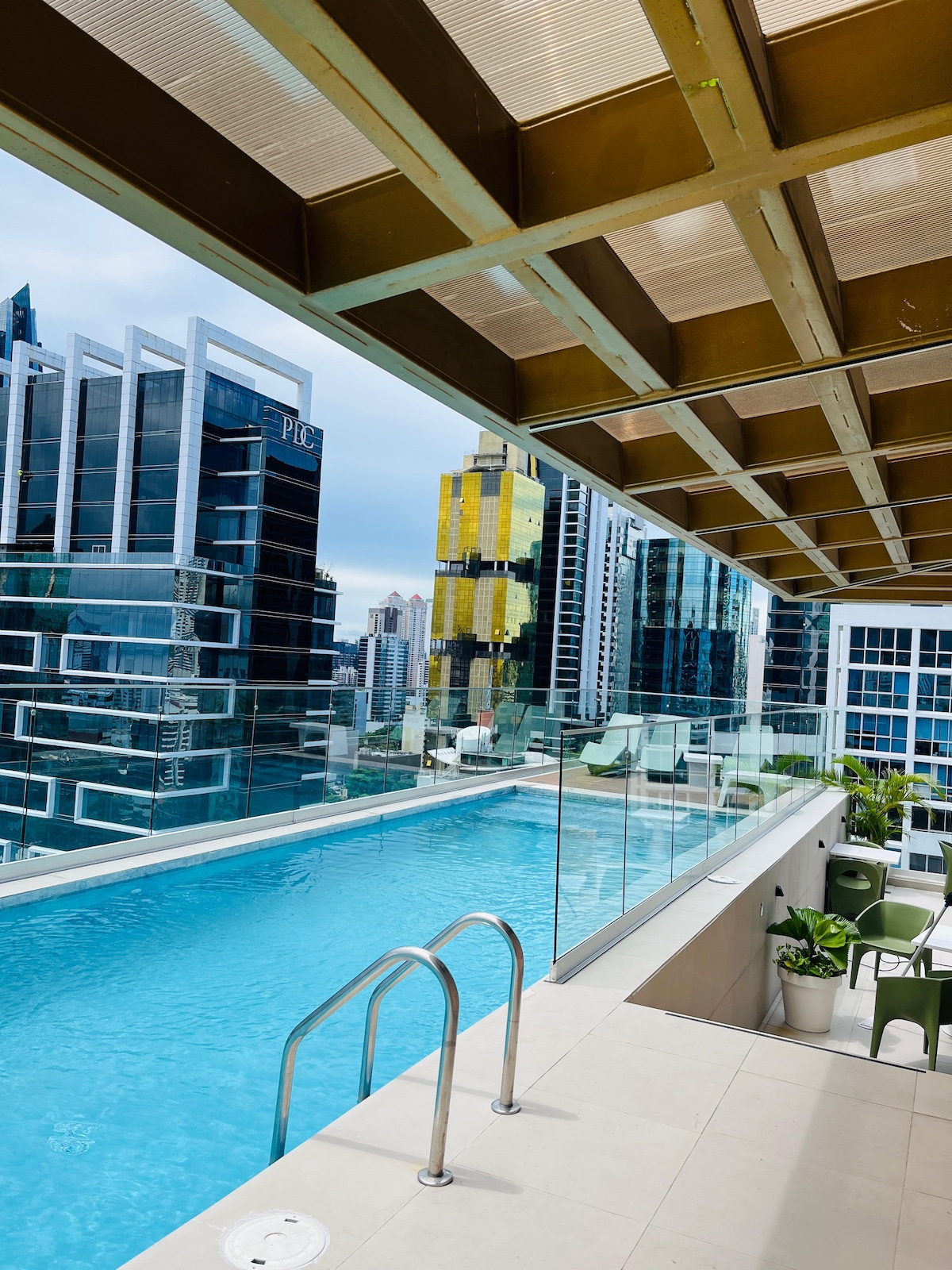 Disfruta de una estadía moderna en el corazón de Obarrio. Este elegante apartamento ofrece piscina infinita con vistas increíbles, gimnasio totalmente equipado y parking incluido. Ideal para viajeros que buscan confort, ubicación céntrica y diseños contemporáneos. a pasos de restaurantes, cafés y centros comerciales. Todo lo que necesitas para una estancia inolvidable en Ciudad de Panamá