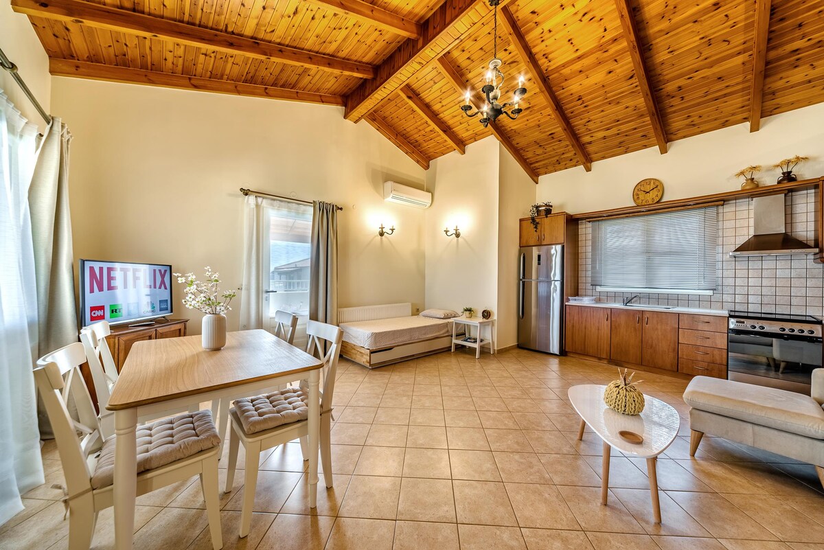 Disfruta de la playa en un elegante apartamento con vistas al mar. Disfruta de impresionantes puestas de sol desde este moderno apartamento a pocos pasos de la playa de Ammoudara. Comienza el día nadando o relájate en el balcón con vistas al mar. El encaje tradicional cretense y las obras de arte agregan un toque de folclore al elegante interior. La casa está totalmente equipada con todo lo que necesitas, incluida una cocina y comodidades modernas como wifi, aire acondicionado y TV. Toma un corto trayecto en auto de 10 minutos hasta el centro de la ciudad de Heraclión.