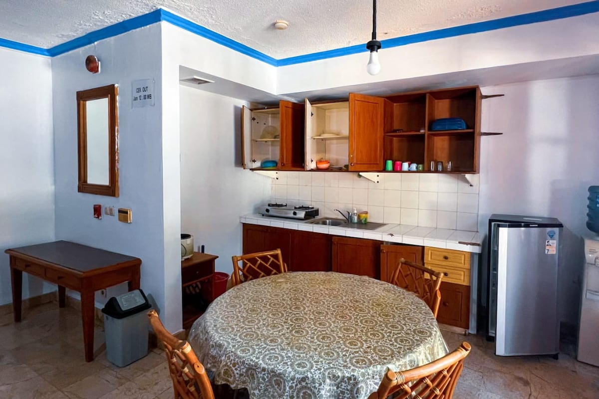 estadía directa con vista a la playa, abre la puerta directa de la playa adecuada para tus vacaciones en familia y pareja... precio asequible para que sea seguro y cómodo inclinadas y sin playas de coral, ideal para que los niños naden instalación completa aire acondicionado,nevera,televisión y utensilios de cocina completos.