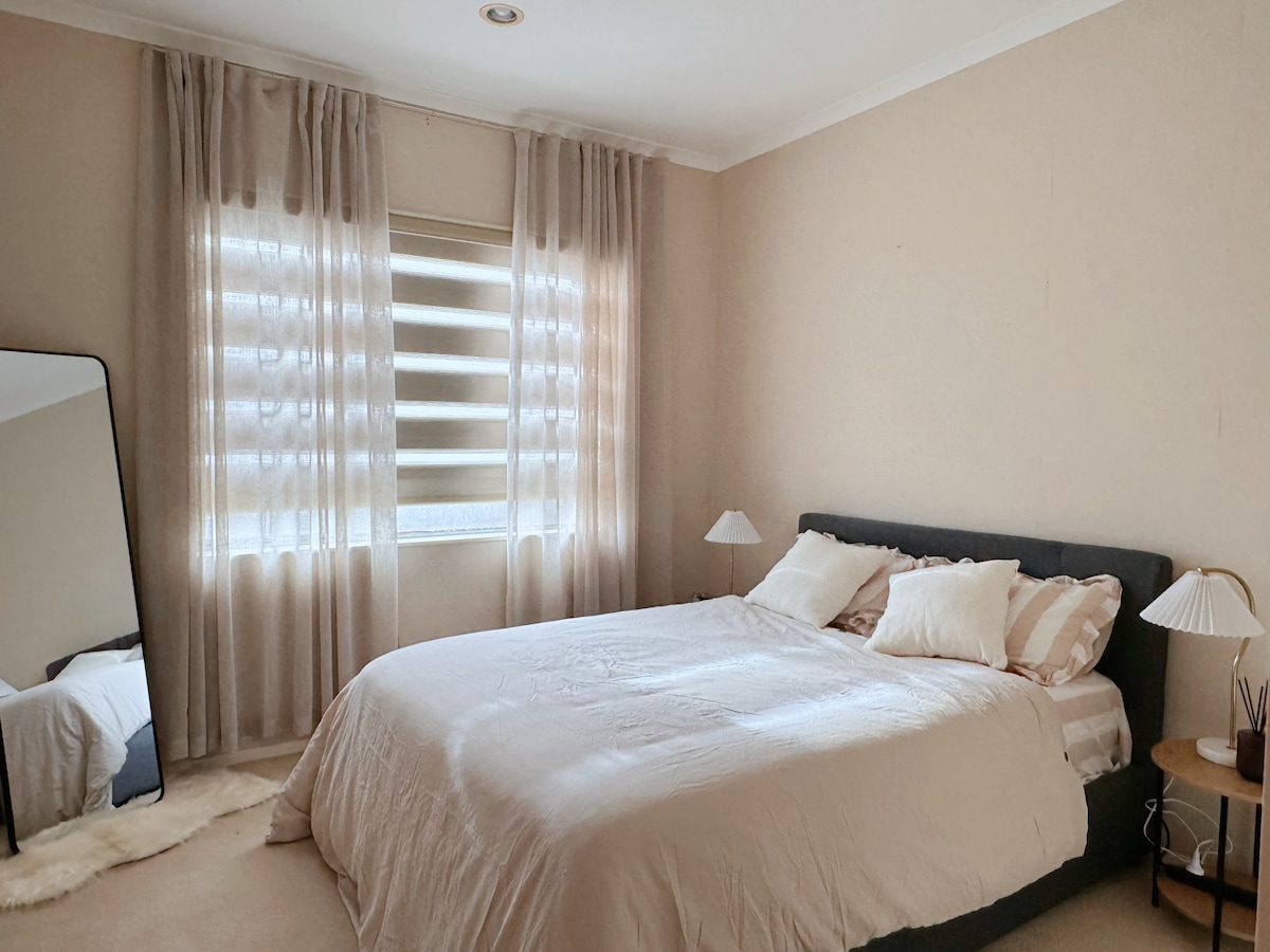 Totalmente independiente y compacta, esta unidad de 2 dormitorios ofrece comodidad y privacidad en la parte trasera de la casa principal, con su propia entrada y jardín privado soleado. Entorno tranquilo: los vecinos están a 50 m de distancia. A solo 3 minutos en coche del centro comercial Botany y a 25 minutos (17 km) del aeropuerto de Auckland. 🛋️ Incluye una cocina abierta totalmente equipada, wifi rápido Spark Max Fibre, dos cómodas camas tamaño queen, aparcamiento gratuito para 2 coches y sin gastos de limpieza. Perfecto para amigos, familiares o compañeros de trabajo. ¡Asequible y cómodo!