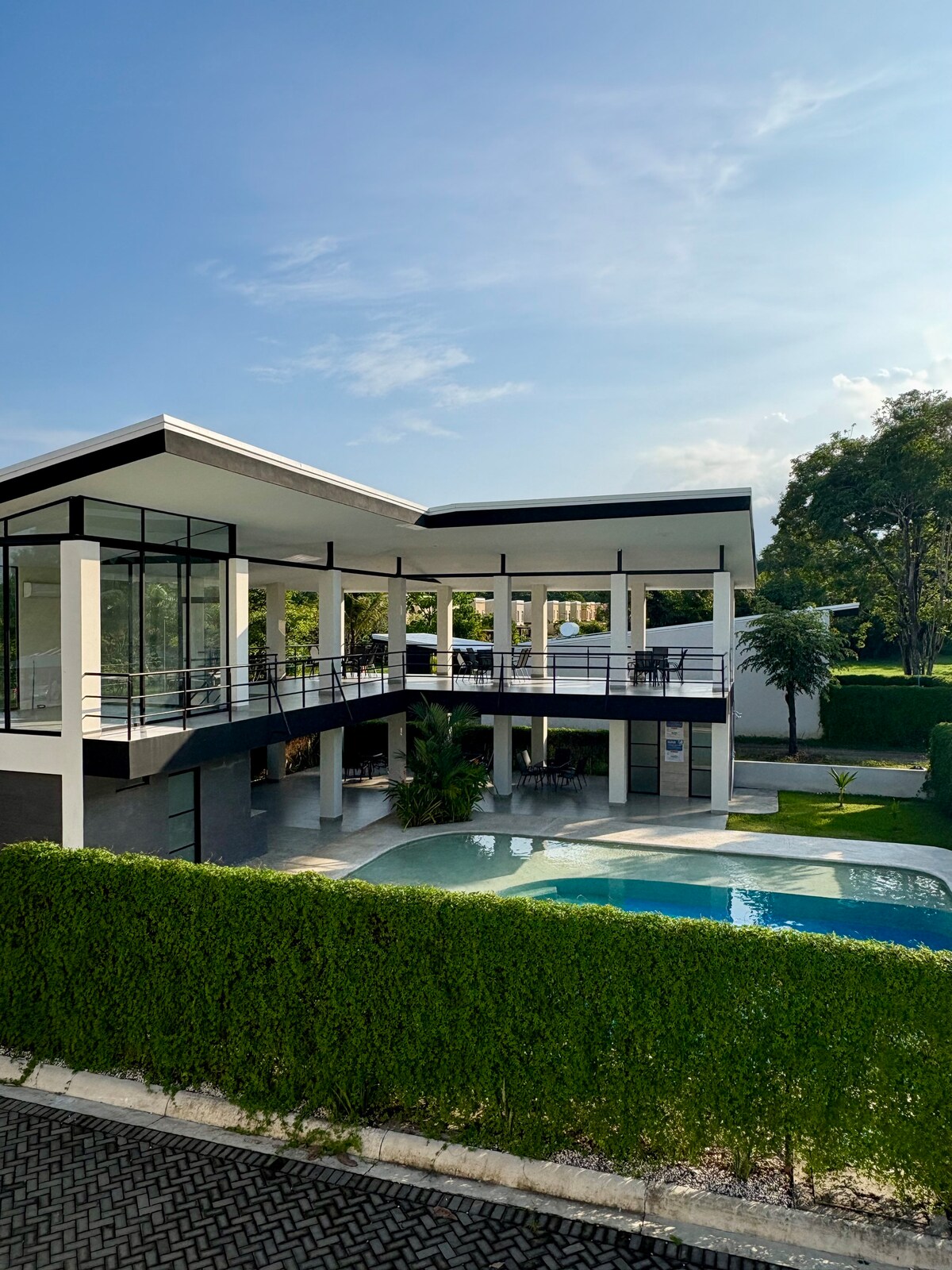 Relájate en esta villa privada de primer nivel con tu propia piscina, a 3 minutos a pie de la playa. Ubicada en la península de Nicoya en la Zona Azul en la playa de Tambor en una comunidad cerrada con seguridad 24/7 con un hermoso campo de golf de 9 hoyos. Concepto abierto y luminoso con 3 camas y 2,5 baños. Barbacoa de carbón. En la comunidad: tienda de comestibles, restaurante, música en vivo y una cafetería. Aire acondicionado. Internet de alta velocidad de 100 Mbps. Estacionamiento gratuito. Se admiten mascotas. Máximo 9 personas. No se permiten fiestas ni ruido.