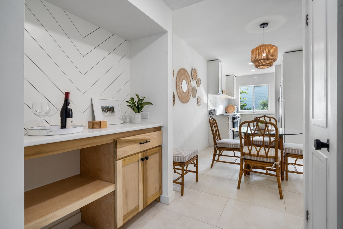 Moderna unidad de 1 dormitorio y 1 baño en un complejo cerrado con acceso a la piscina en Westridge, a pasos de la tienda de comestibles, a 2 minutos a pie del autobús público y a minutos de Cable Beach, Baha Mar y el aeropuerto. Cuenta con Smart TV con streaming, Wi-Fi rápido, generador de respaldo, estacionamiento gratuito, cafetera Keurig con cápsulas, toallas de playa, sillas de playa, equipo de snorkel y corralito de viaje a pedido, perfecto para parejas y viajeros solos que visitan las Bahamas.