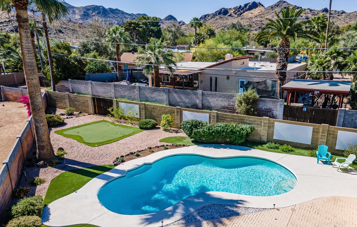 Un oasis privado único, para él y para ella, totalmente autónomo, cerca del corazón de Scottsdale, con piscina privada y cabaña, pista de pickle y baloncesto, putting green y área de lanzamiento completa de 40 yardas, y una enorme cocina abierta y 5 dormitorios. Literalmente, nunca necesitas salir de la propiedad, excepto para comprar comestibles. Pero, si lo haces, es a Camelback y 10 increíbles campos de golf, a 12 minutos de Kierland y el casco antiguo, es la mezcla perfecta de familia, golf y lugar tranquilo para tu escapada.