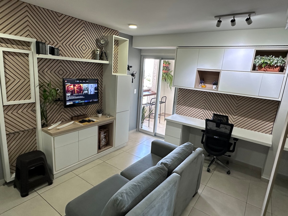 Departamento nuevo a estrenar en edificio lujoso. Tiene 40m² propios, con Smart TV, WIFI, y en el edificio tenes todos los amenities: Piscina , Quincho climatizado con parrilla, Sala de juego de niños, gimnasio equipado, etc Queda a 5 minutos en auto del centro corporativo mas valorado de la capital, y a 25 minutos caminando. Tambien queda a 11 minutos en auto al aeropuerto Silvio Pettirossi Tiene una cama matrimonial + un sofa cama. En total se pueden hasta 3 personas para dormir.