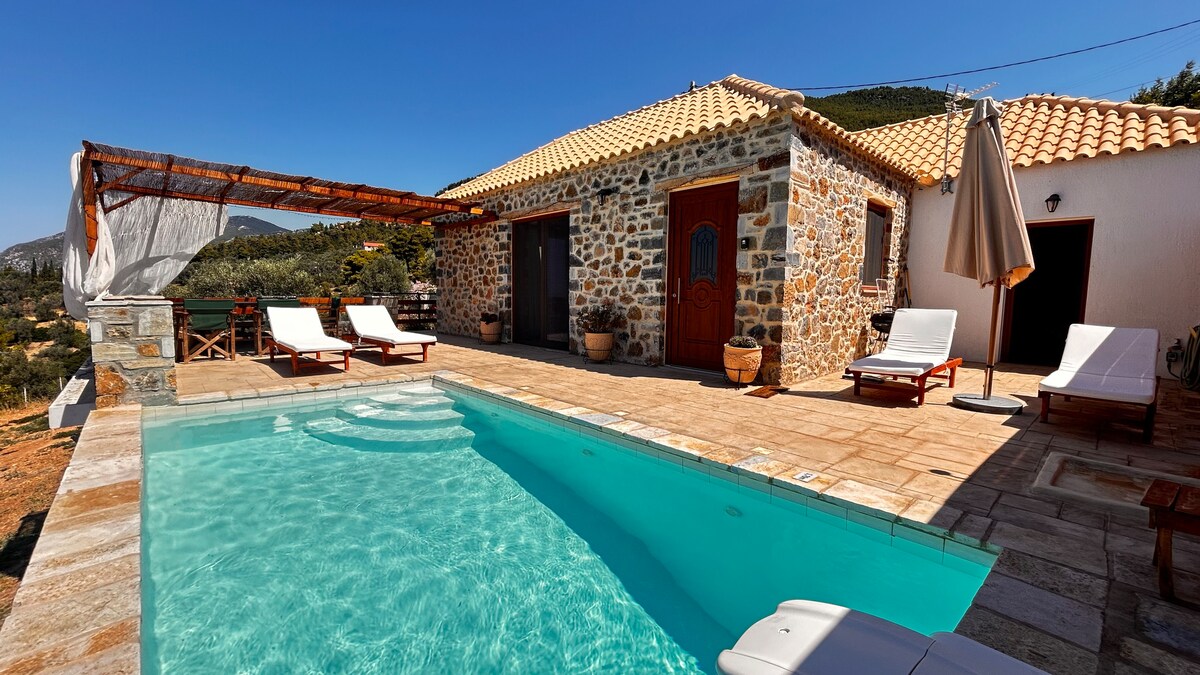 Una casa de campo moderna, un entorno elegante pero familiar para un lugar creado aquellos que buscan un ambiente tranquilo entre la naturaleza, la buena comida y la belleza. La isla de Evia ofrece la mejor solución para aquellos que quieren disfrutar de las vacaciones de verano cerca del mar, pero no quieren perderse todo el confort que ofrece la gran ciudad, a sólo 99 km de Atenas ,130 km del aeropuerto de Atenas. Amplios espacios privados al aire libre, con piscina privada y jardín. Vive una experiencia única, entre la cultura, la relajación y la naturaleza.