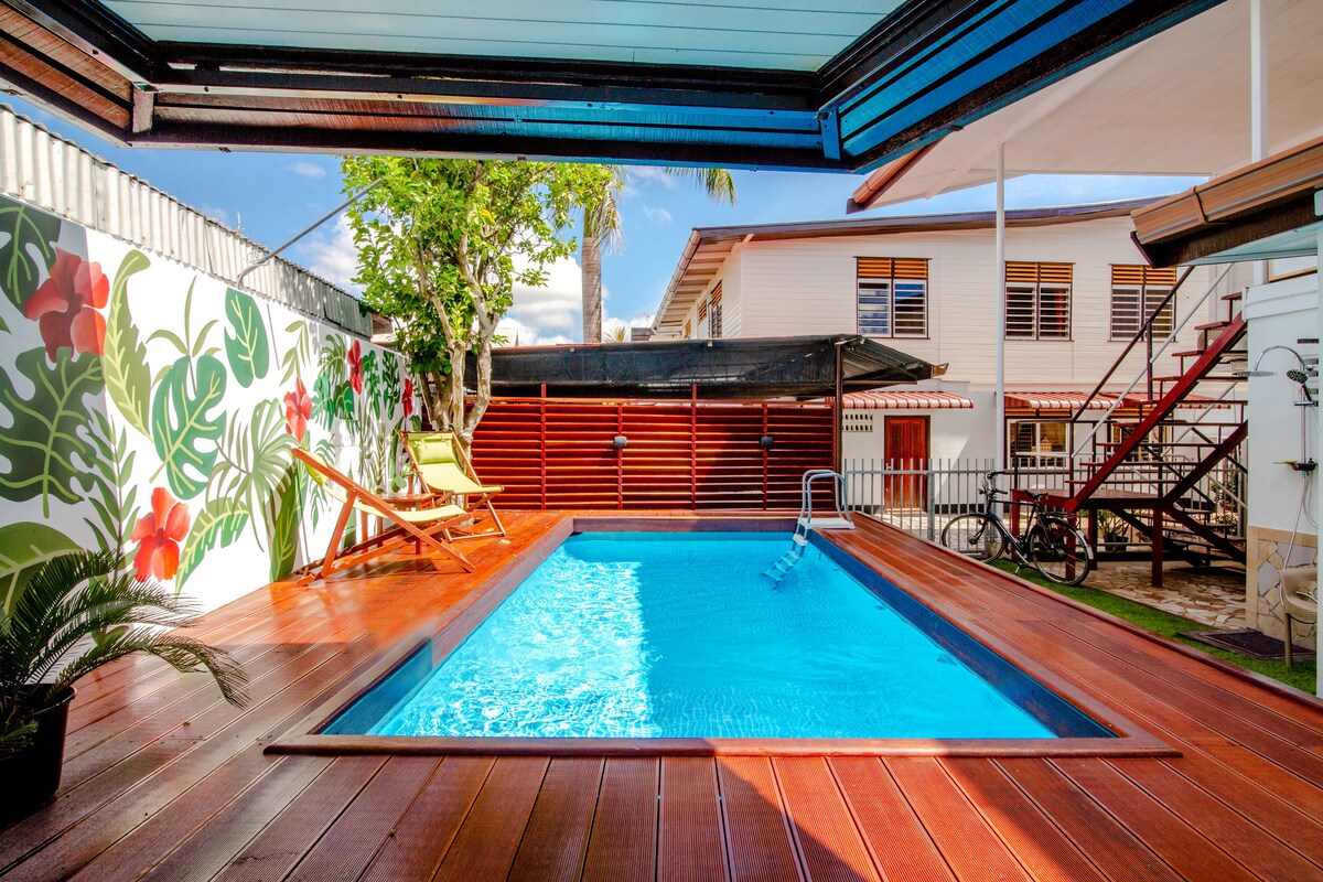 Las casas unifamiliares construidas originalmente en una zona residencial tranquila se han convertido en acogedores apartamentos vacacionales. Por eso, te ofrecemos la experiencia de un “hogar lejos de casa”. Jack 's Apartments tiene una ubicación céntrica en Paramaribo, a menos de 15 minutos del centro de la ciudad. En los alrededores directos de tu estadía, puedes encontrar supermercados, restaurantes y tiendas de ropa. El complejo tiene seguridad diurna y nocturna, gimnasio y piscina.