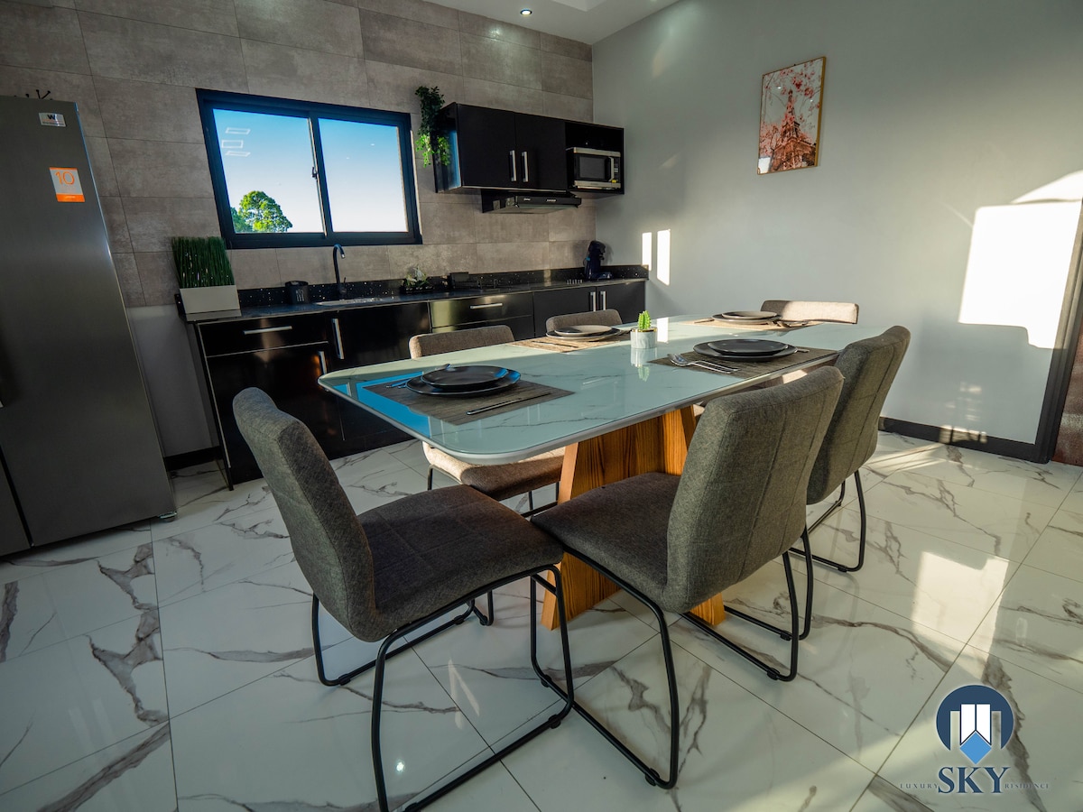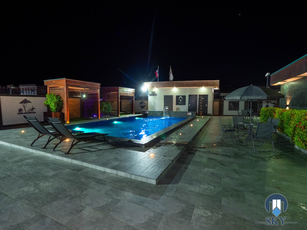 Luxury Sky Group offers this modern apartment located within a well-maintained apartment complex with multiple apartments. Guests enjoy access to two swimming pools: a commercial pool for relaxation and social vibes, and a private, quiet pool at the apartment ideal for calm swimming and privacy. Both pools are cleaned regularly and available during opening hours. Breakfast is available, with a bar serving cocktails and access to a fully equipped gym.