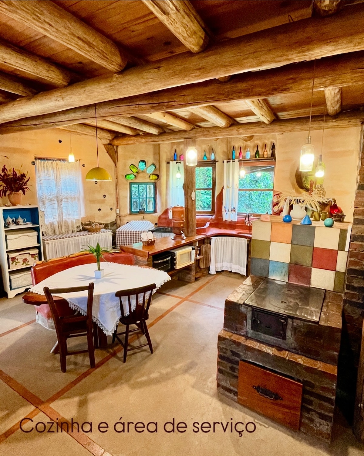 ¡Nosso Rancho es la casa con más encanto de la Colonia de Pelotas! Todo cuidadosamente pensado para el mínimo impacto ambiental y la máxima integración con la naturaleza. Las paredes están hechas de barro, lo que garantiza un gran confort térmico interno. Utilizamos el sol para calentar el agua del baño y de los lavabos, y el agua de lluvia en la descarga del inodoro. ¡Aquí encontrarás tranquilidad, matorrales, arroyos, pájaros, senderos, huertos, baños calientes, camas cómodas, estufas de leña y un quiosco para hacer una barbacoa!