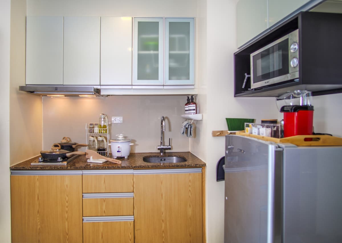 Disfruta de tu estancia corta o larga en mi lujoso loft de 1 dormitorio con balcón mimándote en tus vacaciones o tiempo libre en la cómoda cama tamaño king o en el acogedor sofá de cuero jugando juegos en nuestra consola Nintendo Switch, viendo por ejemplo películas en Netflix en el televisor de 55 pulgadas o trabajando eficientemente utilizando wifi rápido, impresora, escáner. La unidad está lujosamente amueblada y equipada. La unidad se encuentra en SMDC AIR RESIDENCES en Makati.