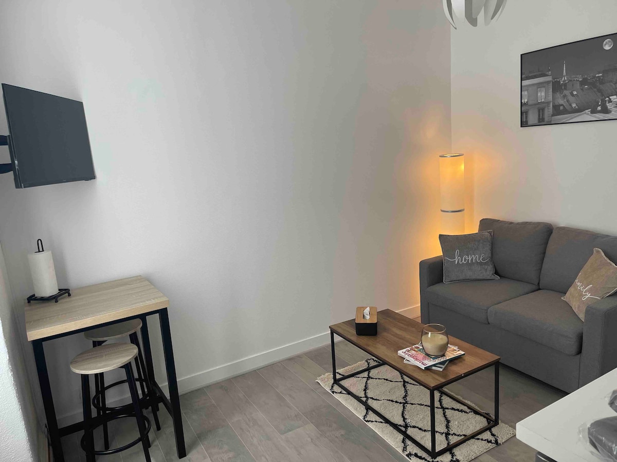 AULNAY Barrio Torre Eiffel, a 12 minutos a pie de la estación de tren RER B (a 15 minutos de París) y a 20 minutos en coche de París y a 15 minutos de Roissy CDG, en una calle residencial, encantador apto. F2 de 22 m² seguro y funcional, que consta de entrada, sala de estar con sofá cama de 2 plazas, smart TV, cocina americana equipada, cuarto de baño con inodoro, dormitorio luminoso con cama doble, 2 mesitas de noche y armario, vajilla y ropa de cama proporcionadas, aire acondicionado frío-calor, lavadora, aparcamiento gratuito en la calle. Cocooning...