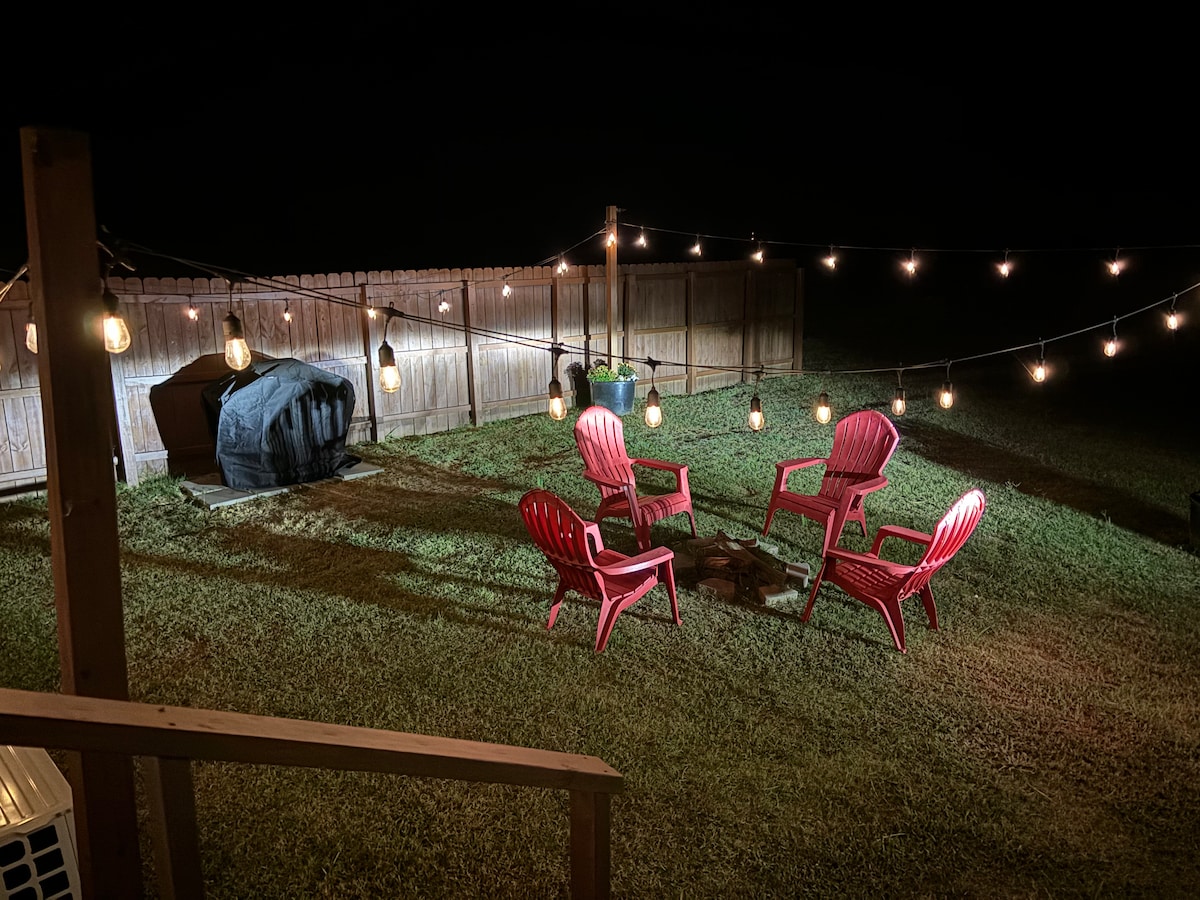 Escápate a la tranquilidad del campo en esta acogedora casa de 3 dormitorios y 2 baños, a solo ½ milla del precioso lago Pat Mayse. Perfecto para familias, parejas o una escapada de fin de semana con amigos, este alojamiento ofrece mucho espacio para relajarse y descansar. Disfruta de las mañanas en el porche con tu café, pasa el día pescando o navegando en el lago y, por la noche, reúnete alrededor del fogón bajo las estrellas. El gran patio ofrece espacio para que los niños jueguen, mientras que el entorno tranquilo hace que sea fácil desconectar y recargar energías.