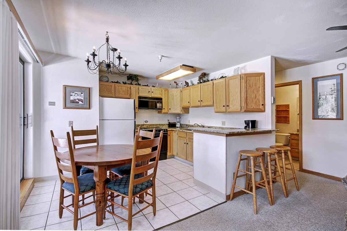 Comfortable, spacious layout with an indoor fireplace and balcony give you and your family a welcoming and modern mountain get-away. Ski-on/ski-off access to both Peak 8 and Peak 7 (via the Gondola) give you access to some of the best skiing in Colorado, steps from your front door. A full kitchen provides easy meals - or enjoy dining outside on the heated patio at the resort restaurant. Enjoy an adult beverage in the indoor/outdoor pool and hot tubs and take in the mountain views and fresh air.
