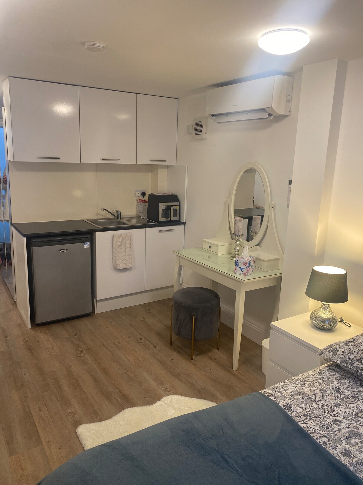 🏡 Estudio privado moderno en Watford | Cerca de Warner Bros Studio Disfruta de un estudio totalmente privado, moderno y autónomo en una tranquila zona residencial de Watford, ideal para los fanáticos de Harry Potter, parejas y viajeros de negocios que prefieren la comodidad fuera del centro de Londres. El estudio ofrece comodidad de estilo hotelero con un baño de lujo, wifi rápido, un espacio de trabajo dedicado y estacionamiento gratuito en el lugar. Ubicado a solo 8 minutos en auto del Warner Bros. Studio Tour y bien conectado con el centro de Londres en autobús/tren/taxi.