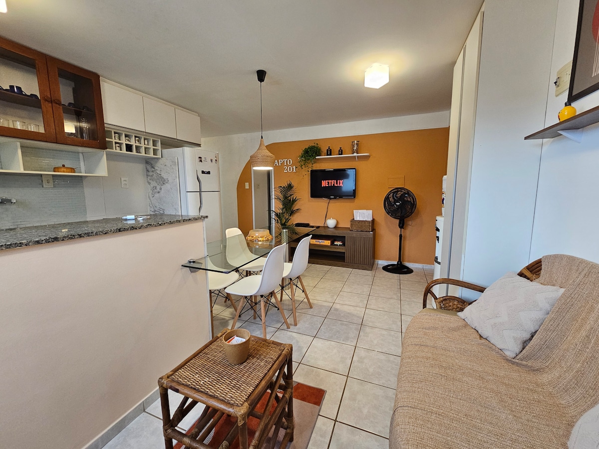 Relaxe neste espaço totalmente CLIMATIZADO.Apartamento único com vista mar, propriedade com acesso a praia e além de uma ótima piscina para adultos e crianças com Decker de madeira que dá visão para o morro do careca , apartamento completo com AR CONDICIONADO NA SALA E NO QUARTO , geladeira , fogão de uma boca por indução, máquina secadora , tv a cabo , wi-fi , estacionamento grátis e rotativo, limpeza diária lugar realmente ótimo para casal passar seu final de semana ou suas férias.