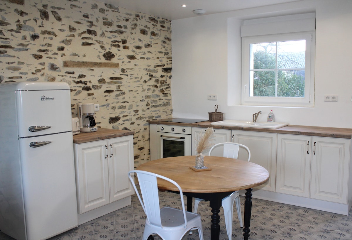 ¡A medio camino entre el Monte St Michel y los castillos del Loira! En una ruta de senderismo, se alojará cómodamente en la tranquilidad del campo y con total independencia. Tendrá a su disposición una bonita sala de estar con 1 sofá y 1 mesa, 2 dormitorios y un baño. Dispondrá de una terraza privada frente a los pastos. Solo, en pareja, con sus hijos o un par de amigos, estaremos encantados de recibirle y ofrecerle un desayuno con nuestros productos caseros.