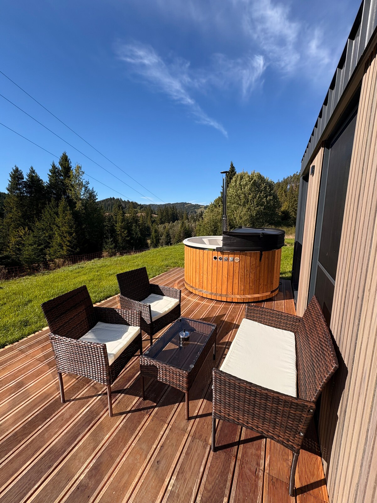Escápate de la realidad y sumérgete en la naturaleza. Nuestra acogedora cabaña aislada está rodeada de bosques y prados, lejos del ruido y el ajetreo. Es un lugar donde el día comienza con el olor del café y termina con una puesta de sol en el jacuzzi.
