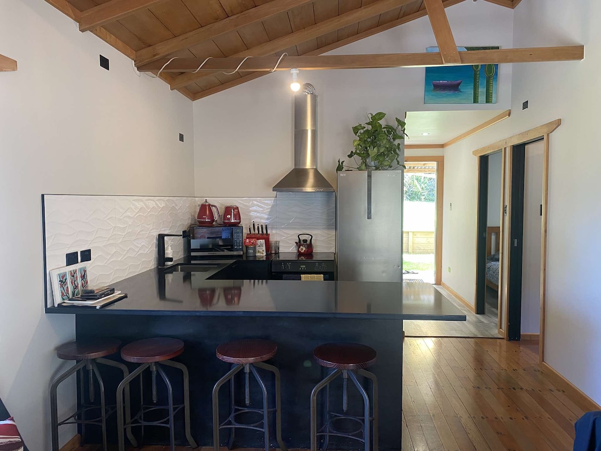 Kapia Lodge está situado en el borde de los acantilados de Pouto y ofrece unas vistas impresionantes del puerto de Kaipara. Aislado y privado, es el refugio perfecto para una escapada romántica. Desconecta, relájate y sumérgete en la tranquilidad de Kaipara. Acurrúcate con un libro, disfruta de un juego de mesa o relájate en la terraza, tomando el sol y disfrutando de los impresionantes alrededores. Al caer la noche, relájate en el jacuzzi con una copa de vino, observa las estrellas o duerme mientras la luz de la luna baila sobre el puerto.