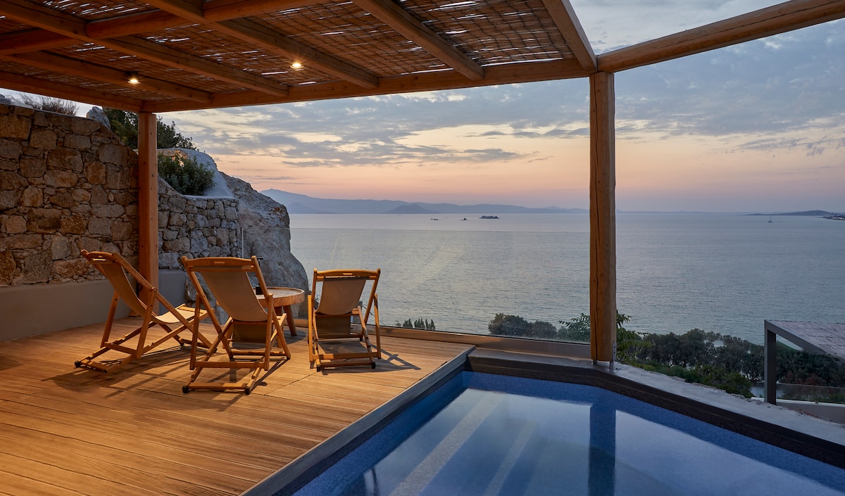 Giacomo Home is an inviting property in a breath-taking location. Built in traditional Cycladic-style it boasts impressive stone clad walls and acres of space. The simplicity of the architectural design and the clean surfaces are a central point of the architectural composition and functionality of the spaces. The houses’ two en-suite bedrooms (Cocomat sleeping eperience) provide you with cool, calm havens which will help soothe you to sleep.