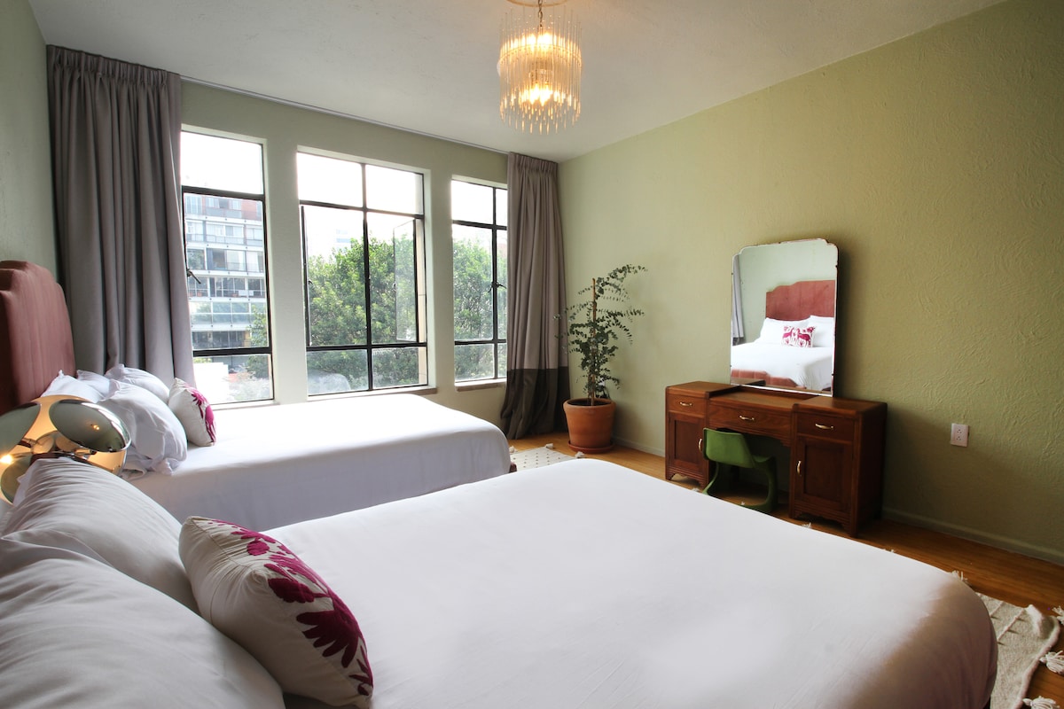Ample space, high ceilings, wide windows that open to the balcony. Wood floors, bunch of light. sofas. The place is silent, carefully decorated, nice for work or just to be here. And outside you are in the core of la Colonia Roma Norte, in one of the nicest spots: beautiful streets and buildings, very lively. King and queen size beds. Also, please, check this new one: https://www.airbnb.mx/rooms/1604605046335668118?guests=1&adults=1&s=67&unique_share_id=4dd1b1c9-fc93-4c94-9ca1-c91cd0256dae