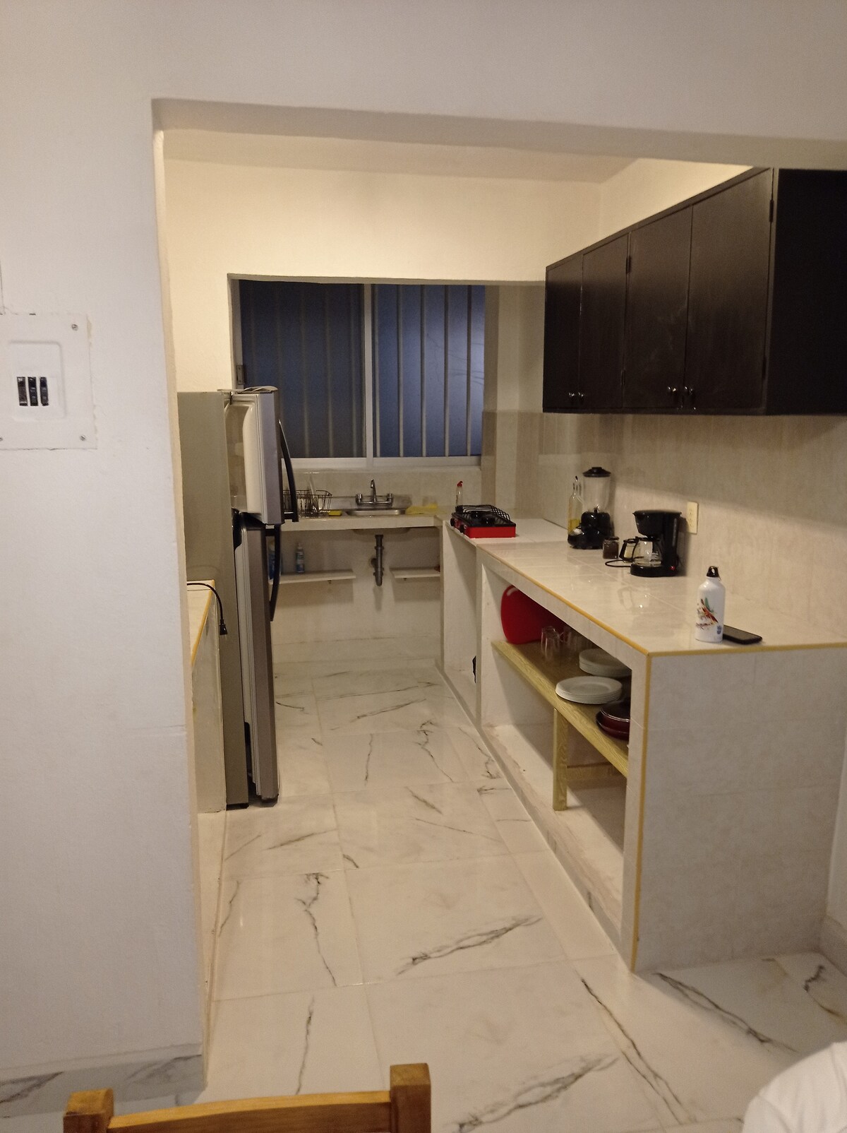 Disfruta de Capri, moderno y acogedor loft en el corazón de Tuxtla Gutiérrez. Este espacio privado cuenta con aire acondicionado, cocina equipada con lo esencial, baño con agua caliente y cómoda cama frente al televisor. Ubicado a solo unos pasos del emblemático Parque de la Marimba, te permite explorar la ciudad fácilmente. Perfecto para viajeros que buscan comodidad, privacidad y una ubicación estratégica, ofrece acceso autónomo y estacionamiento privado dentro del edificio.