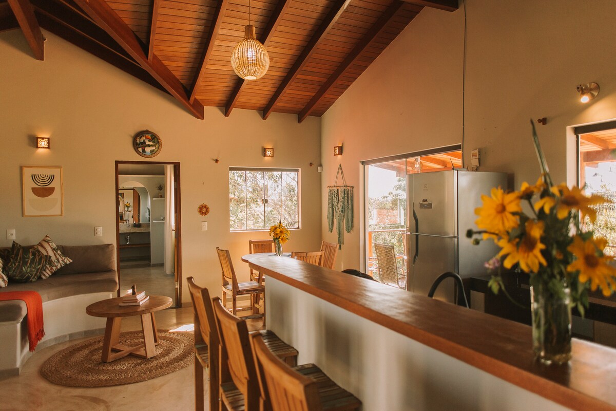 Casa Cristais es un refugio en medio del cerrado a solo 7 km del centro del Alto Paraíso de Goiás, en Chapada dos Veadeiros. Está a 5 km de asfalto de buena calidad y a 2 km de carretera accesible con coche ordinario. La casa destaca por sus hermosas vistas, balcón, jacuzzi y piscina infinita con aire acondicionado. La cascada más cercana es la cascada Cristais, a solo 20 minutos en auto. Lugar ideal para descansar, silenciar y reconectar.
