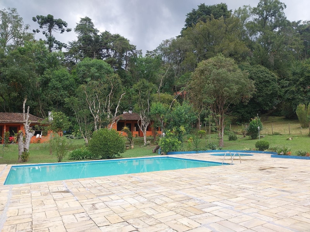 El Refugio das Juçaras es una típica casa forestal, rústica, limpia, acogedora y rodeada de piedras gigantes que hacen que el terreno esté encantado. La casa se encuentra dentro de un Área de Protección Ambiental, incrustada en la naturaleza, incluidas palmeras, helechos y otras bellezas de la selva atlántica. En la parte inferior de la tierra pasa el cristalino río Alambari, que separa nuestra tierra del Parque Nacional Itatiaia. La casa está en una región cerca de los pozos esmeralda de Serrinha. ¡Es un lugar encantado!