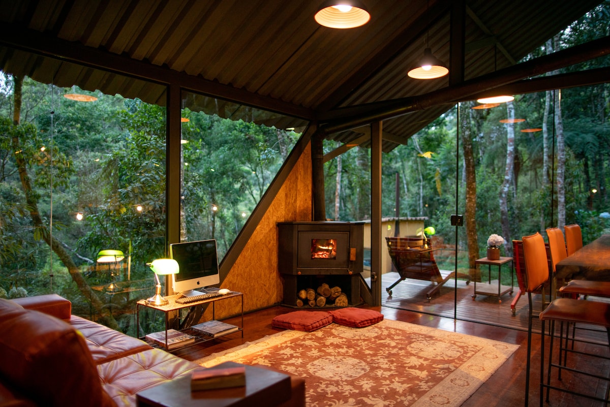 Reserva exclusiva nas montanhas e cachoeiras: venha viver essa experiência incrível. Localizado a 4h de SP ou RJ, o Chalé de Vidro é moderno, diferenciado e mobiliado com simplicidade e bom gosto. Lareira e vinho para o frio, ou trilhas, rios e banho de cachoeira para dias quentes. Curta a natureza e desfrute de belas paisagens. O chalé ainda conta com sauna seca e ofurô para você ter uma experiência completa de imersão e conforto em meio à natureza. Delivery de refeições disponível.