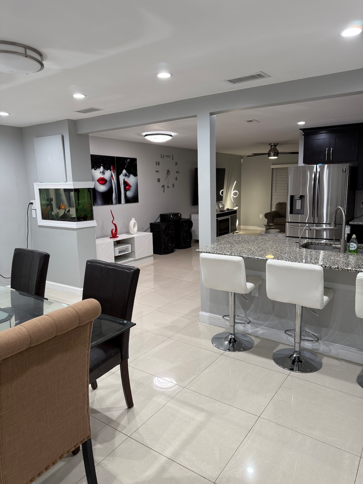 Relax in your birthday suit in a fun clothing-optional Paradise lakes Resort. Modern furniture sleeps up to 4 People with a King Size Bed and a leather sleeper sofa in living room with Memory Foam mattress. Full kitchen with refrigerator, oven range and microwave for cooking, coffee maker, washer and dryer for laundry, 2 TVs, and a bath tub for relaxing. The clubhouse 2 Swimming Pools, Hot Tub, events like Karaoke, Live Bands and more (fees vary by days of week). Thank you and enjoy!