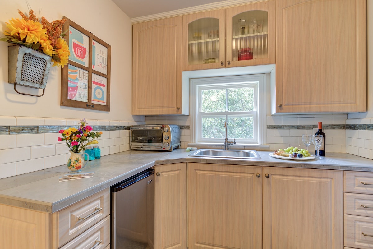 The above garage guest suite affords privacy and peace. With its own living space, kitchenette, bedroom and bathroom this 400 sq ft space with a deck, semi-private entrance and dedicated garage space is perfect for your visit to wine country. This listing hosts humans only. Please no pets, please don't ask. We also ask that you do not bring small children, the suite is not suited to host little ones and the max occupancy is two persons, 10 or older.